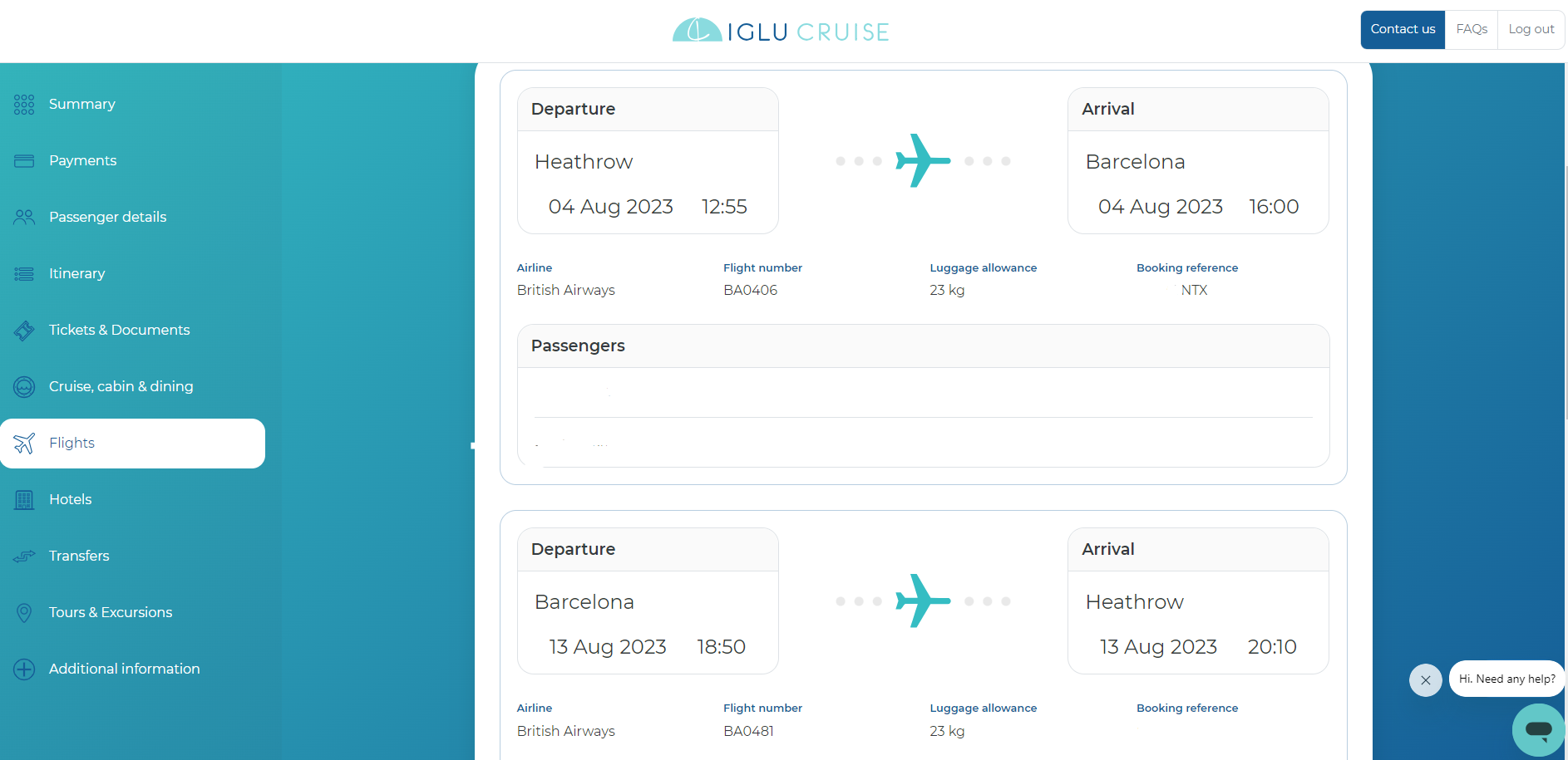- Passenger names (please ensure these match your passport)